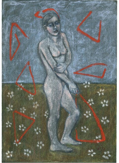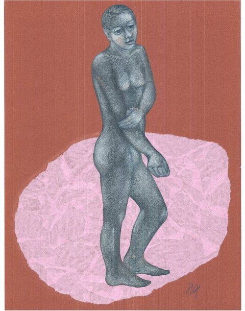 Akte, farbig collagiert I