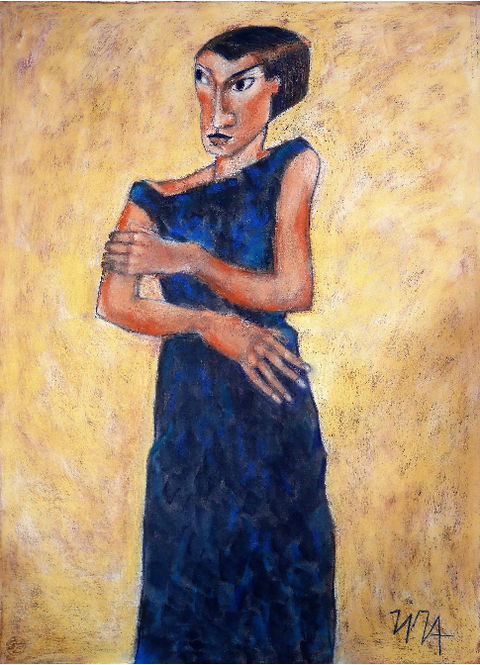 "Frau in blauem Kleid"